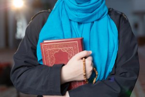 Young muslim woman praying in mosque